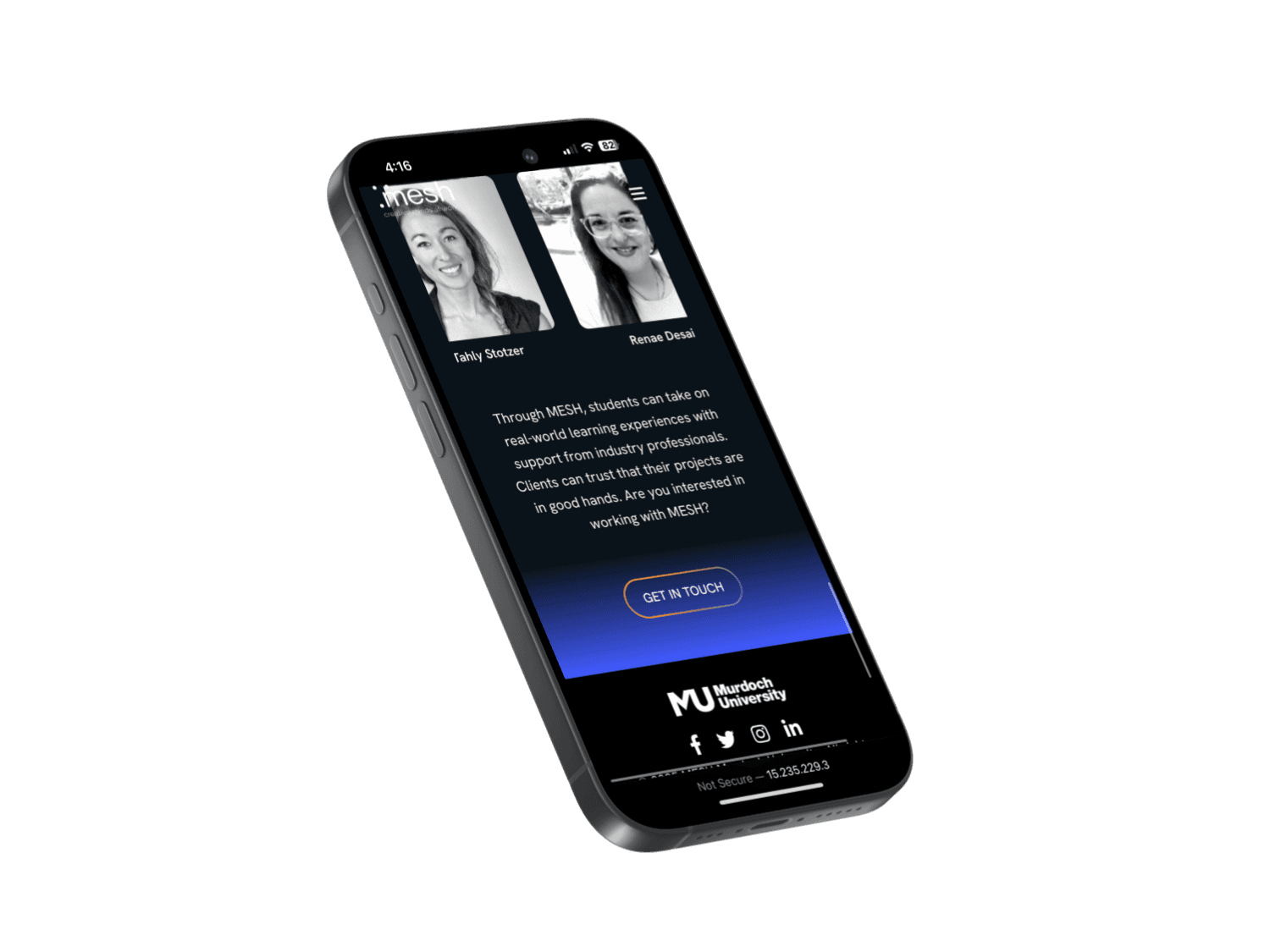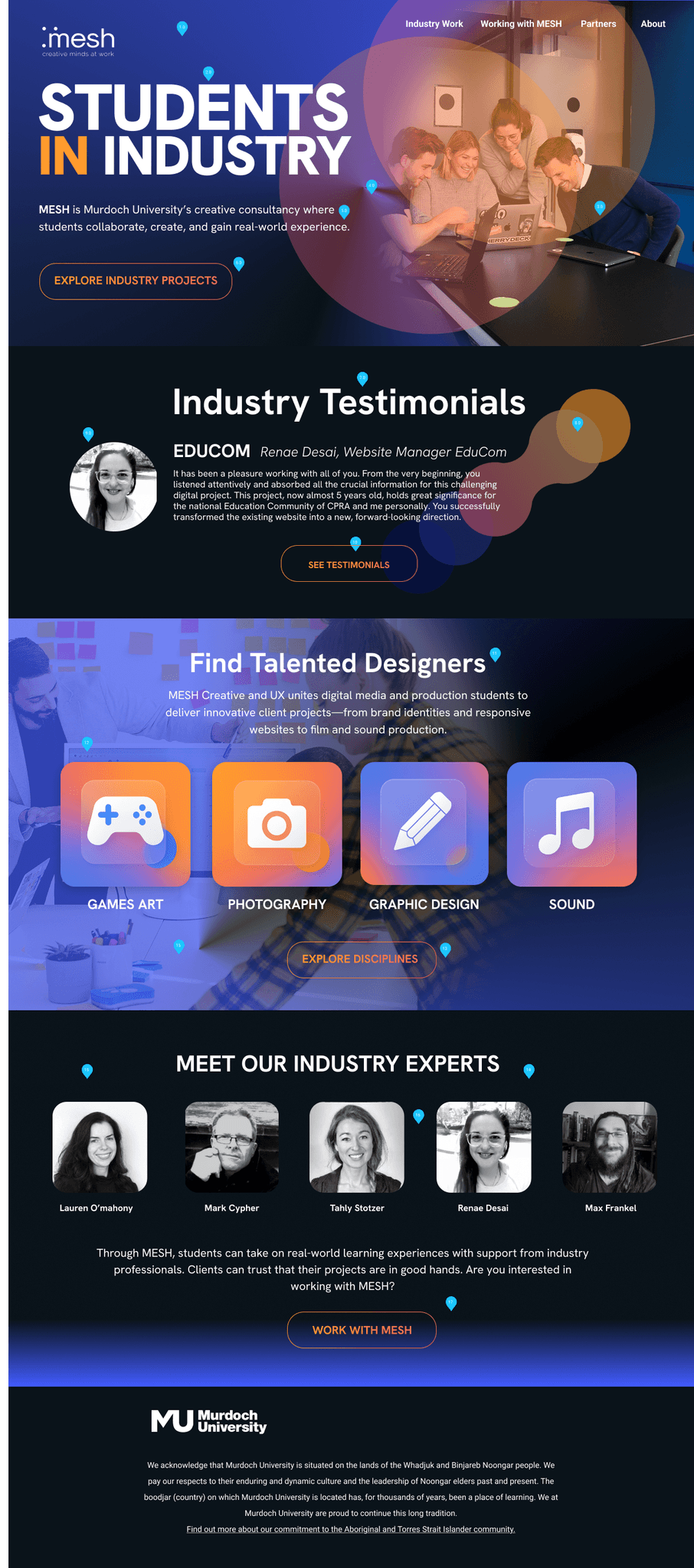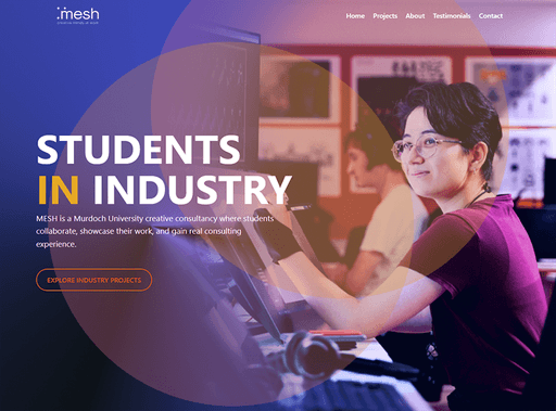 Mesh is a website designed for Murdoch University students who are looking for work in the creative industry to gain experience.